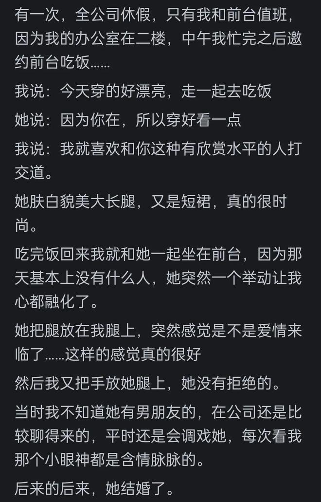 今日话题:你对同事做过最暧昧的事情是什么?接下来小编就来看看网友们是如何看待这个话题的。当我21岁的时候,有一次我和一个比我大两岁的女孩睡在同一张床上,但什么也没发生。现在回想起来,我不知道自己是年轻还是愚蠢。我当时正在出差,疫情期间,我和一位30多岁的同事、两位20多岁的同事住了半个月。除了这段关系没有发生之外,其他一切都已完成。我有好看的外表和好身材。我经常和公司里的一位已婚会计师交谈,并经常取笑她。有一次,我和女朋友加班,我开玩笑说:“我想吃饭。”然后他挺起胸膛,开玩笑地说:“你有胆子来这里吗?”就在这时,我的大脑突然一震,我竟然伸手抱住了他。我们都很惊讶。我以为她在躲,他却以为我没有勇气躲。然后他拍拍我的手,问我摸够了吗?从那以后,我经常吃它,但我们从未越过那条线。这是我在同事家修理梳妆台时发生的事情。那时我已经有女朋友了,我有自己的办公室,管理着数百名员工。我有一个同单位另一个部门的同事,经常过来聊天。他有着一流的身材,身材高大,比例匀称。无论走到哪里,她都是所有男同事关注的焦点。当他来看我时,我们经常谈论一些丰富多彩的话题,比如他在泰国观看色情表演的细节,我们常常很难坐稳。有一天,她真的吓到我了。她像往常一样来到我的办公室,站在我面前,说她感觉自己的尾骨有点突出,想让我帮她看看。然后他脱掉了裤子,露出了她的下半身,让我可以看到,可以触摸。我很害怕如果他的问题暴露了,我不仅会失去工作,还会惹上大麻烦,所以我必须尽快面对并解决。她胆子太大了,没有勇气在办公室里勾引。如果在不同环境中运行,结果可能会有所不同。认识我们见面后的10天,我在楼梯上交作业。没有人提到爱情,我就交了作业。看完网友的这些精彩举动,手机屏幕前的你是否也有话要说呢?欢迎在评论区留言。